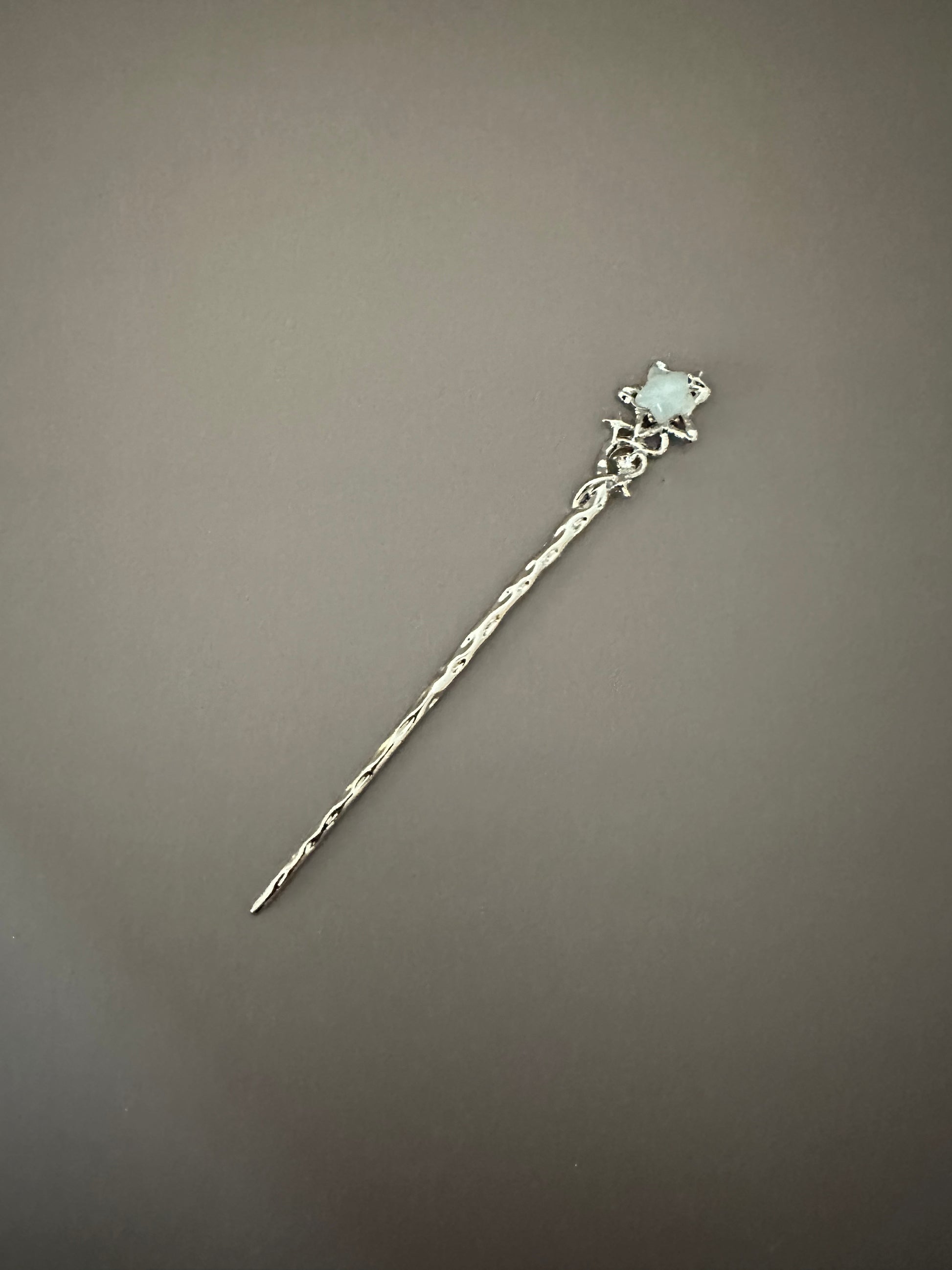 Twisting silver design crowned with a pale star — a symbol waiting to be named.